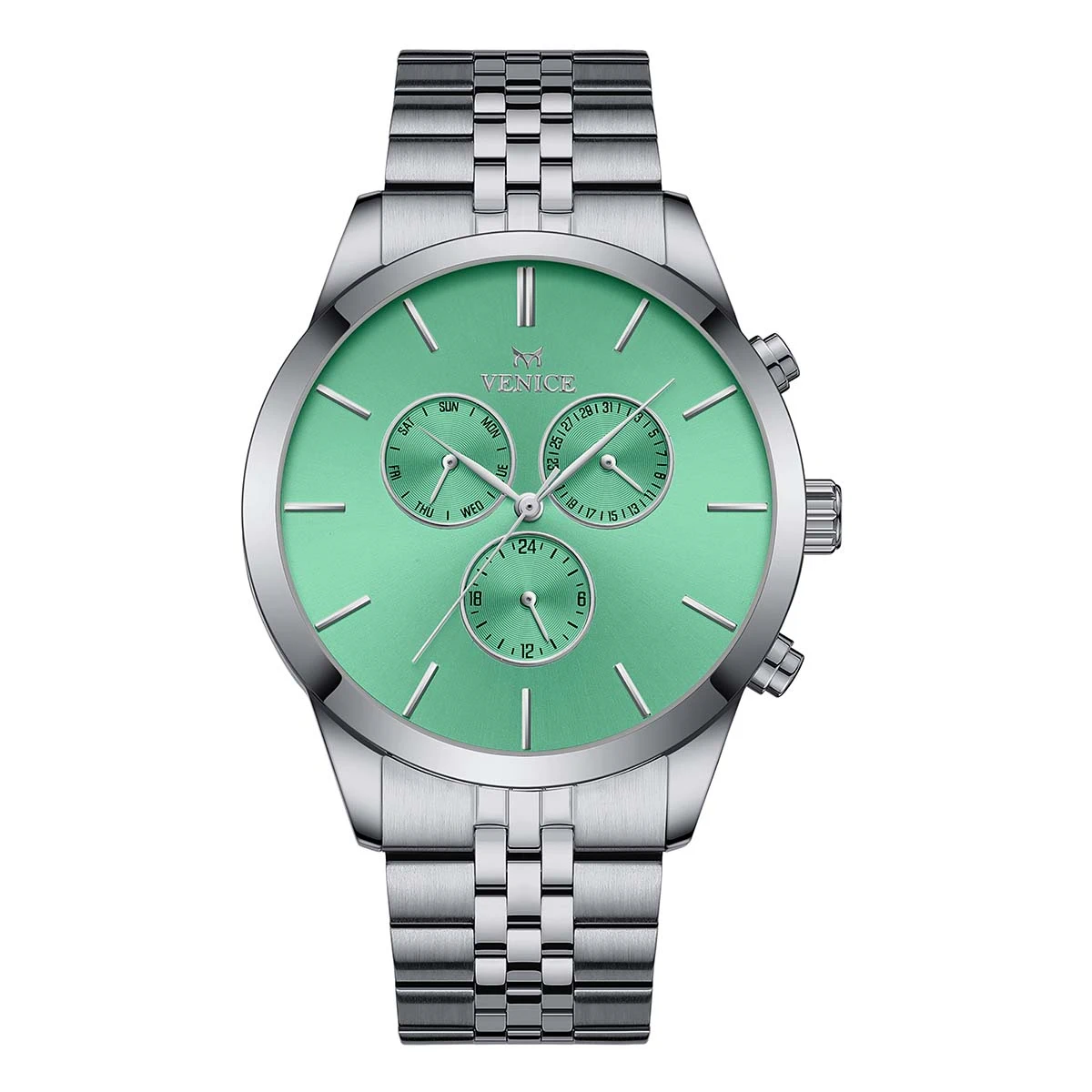 ساعت V801641812 از برند ونیز، یک ساعت تک مردانه است که به شماره رفرانس V80164 شناخته میشود. این ساعت فول تایم با بند فلزی و قاب استیل طراحی شده که همراه با رنگ بند استیل، جلوهای از هنر و شکوه ایتالیایی را به نمایش میگذارد. صفحه این ساعت با رنگ تیفانی، جذابیت خاصی به آن بخشیده و با دقت در جزئیات، ترکیبی از سنت و مدرنیته را ارائه میدهد.