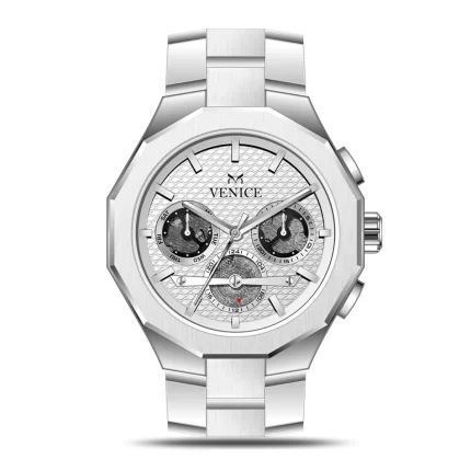 ساعت V802281802 از برند ونیز، یک ساعت تک مردانه است که به شماره رفرانس V80228 شناخته میشود. این ساعت فول تایم با بند فلزی و قاب استیل طراحی شده که همراه با رنگ بند استیل، جلوهای از هنر و شکوه ایتالیایی را به نمایش میگذارد. صفحه این ساعت با رنگ سبز، جذابیت خاصی به آن بخشیده و با دقت در جزئیات، ترکیبی از سنت و مدرنیته را ارائه میدهد.
