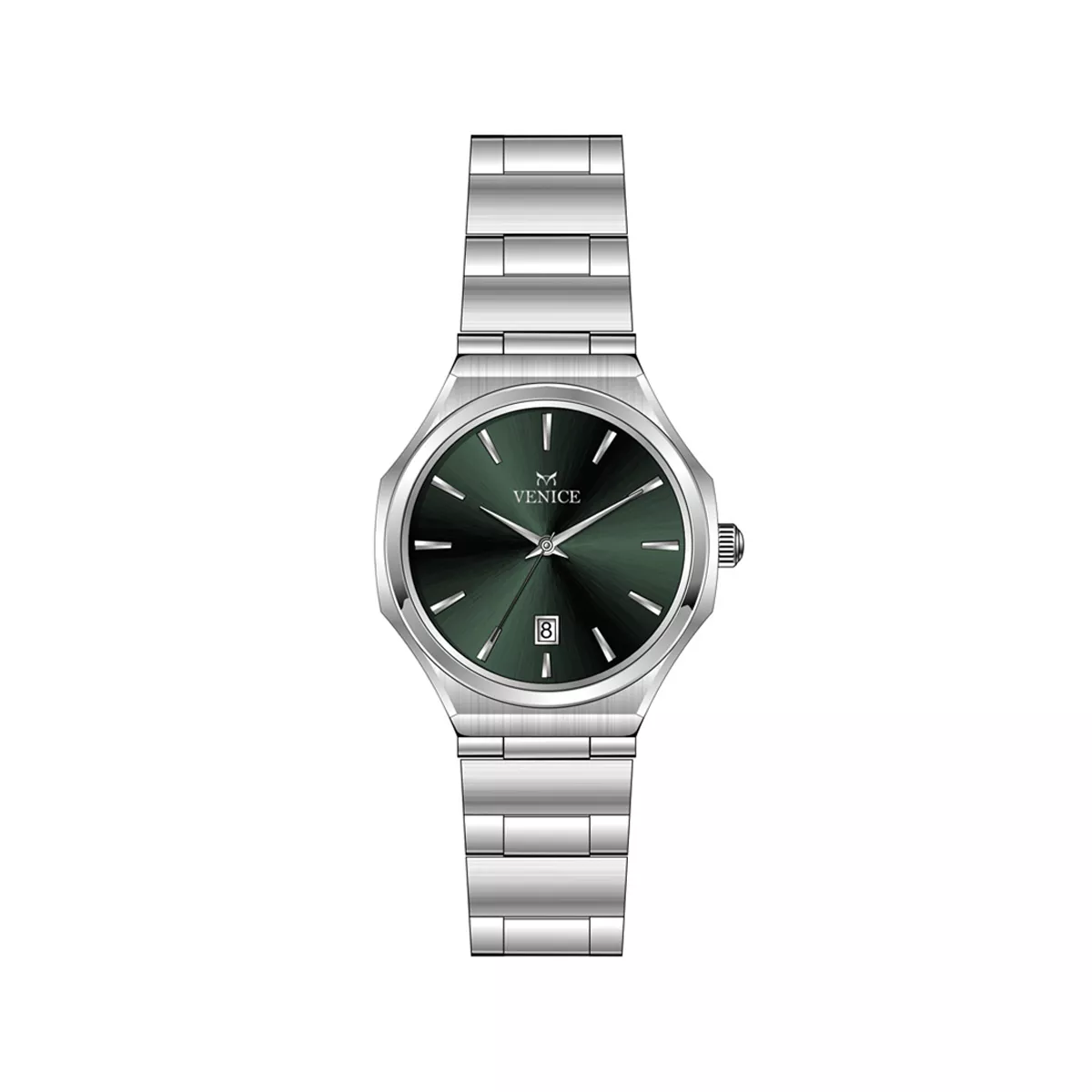 ساعت V802211801 از برند ونیز، یک ساعت ست زنانه است که به شماره رفرانس V80221 شناخته میشود. این ساعت کلاسیک با بند فلزی و قاب استیل طراحی شده که همراه با رنگ بند استیل، جلوهای از هنر و شکوه ایتالیایی را به نمایش میگذارد. صفحه این ساعت با رنگ سبز، جذابیت خاصی به آن بخشیده و با دقت در جزئیات، ترکیبی از سنت و مدرنیته را ارائه میدهد.