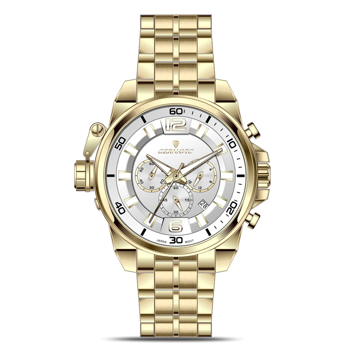 ساعت گرناویک با کد G487002102 ، یک ساعت مردانه با شماره رفرانس G487 است که با دقت و فناوری پیشرفته ژاپنی ساخته شده است. این ساعت کرنوگراف با بند فلزی و قاب طلائی همراه با رنگ بند طلائی طراحی شده است تا ظاهری ساده و در عین حال مدرن داشته باشد. صفحه ساعت با رنگ سفید طراحی شده که در کنار تکنولوژی پیشرفته ژاپنی، دقت و کارایی بینظیری را ارائه میدهد.