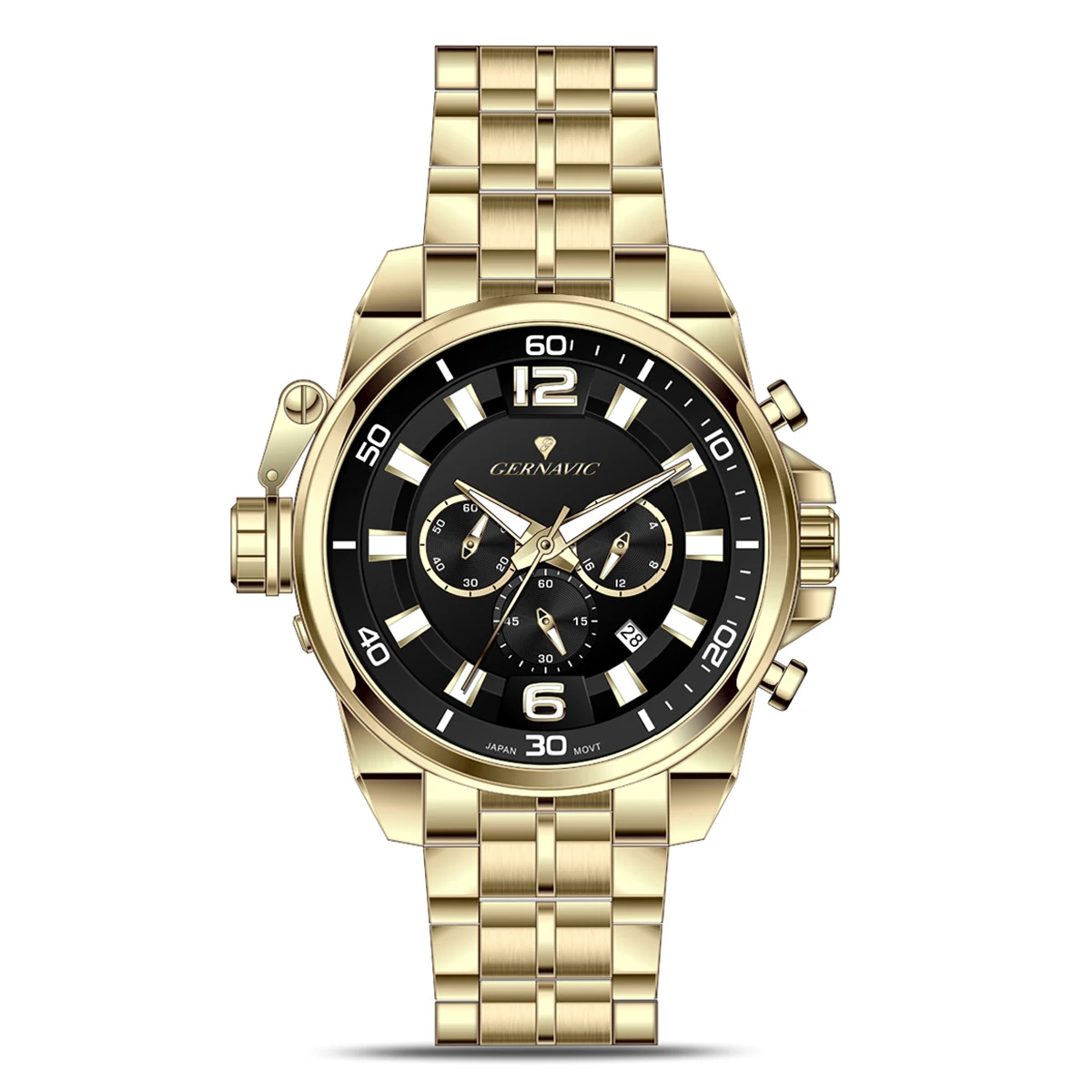 ساعت گرناویک با کد G487002502 ، یک ساعت مردانه با شماره رفرانس G487 است که با دقت و فناوری پیشرفته ژاپنی ساخته شده است. این ساعت کرنوگراف با بند فلزی و قاب طلائی همراه با رنگ بند طلائی طراحی شده است تا ظاهری ساده و در عین حال مدرن داشته باشد. صفحه ساعت با رنگ مشکی طراحی شده که در کنار تکنولوژی پیشرفته ژاپنی، دقت و کارایی بینظیری را ارائه میدهد.