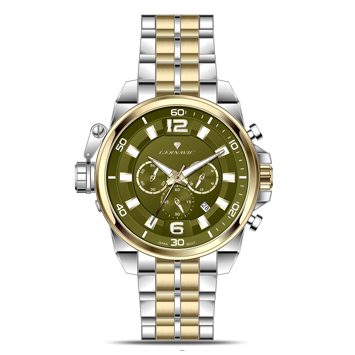ساعت گرناویک با کد G487005702 ، یک ساعت مردانه با شماره رفرانس G487 است که با دقت و فناوری پیشرفته ژاپنی ساخته شده است. این ساعت کرنوگراف با بند فلزی و قاب دورنگ استیل طلائی همراه با رنگ بند دورنگ استیل طلائی طراحی شده است تا ظاهری ساده و در عین حال مدرن داشته باشد. صفحه ساعت با رنگ سبز طراحی شده که در کنار تکنولوژی پیشرفته ژاپنی، دقت و کارایی بینظیری را ارائه میدهد.
